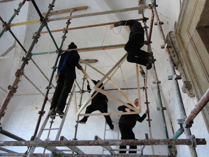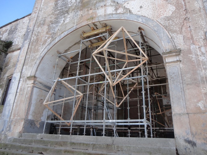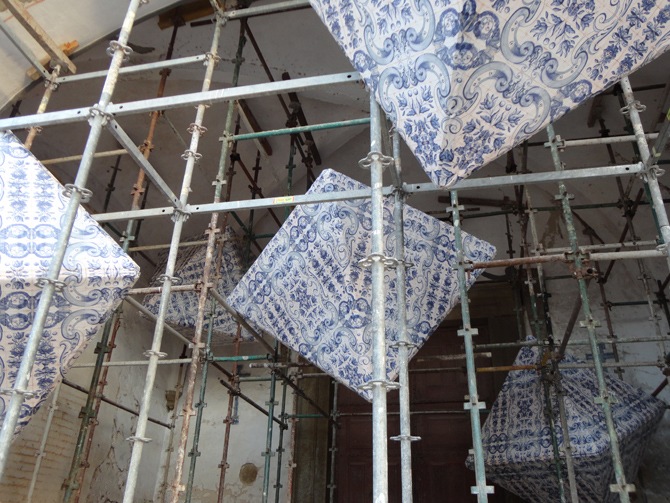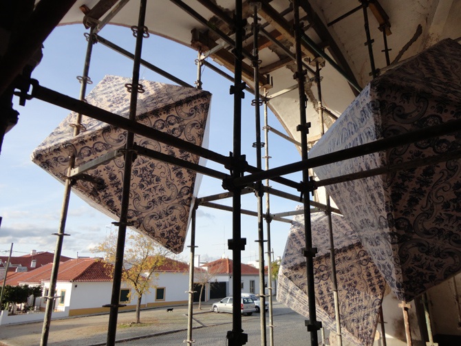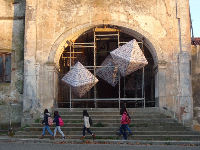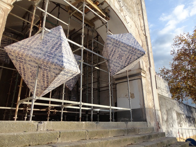 Die Installation besteht aus 5 Okatedern, die in das vorhandene Baugerüst der baufälligen Kirche des ehemaligen Klosters Convento do San Francisco eingearbeitet sind. Die in unterschiedlichen Winkeln platzierten Oktaeder durchdringen das orthogonale Koordinatengitter des Gerüsts. Die Objekte sind mit einem typisch portugiesischen Fliesenornament bedeckt.