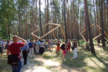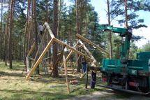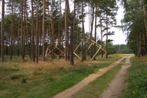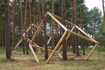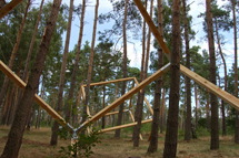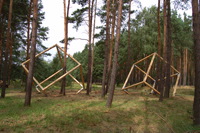 Unter Kiefern, 2007Installation im Wald Konstruktion aus Kiefernbalken, Kantenlaenge 4,50m, Installation am Wanderweg zwischen Belzig und Wiesenburg im Hohen Flaeming. Die Arbeit erhielt den ersten Preis des bundesweiten Wettbewerbs Kunstwanderweg Hoher Flaeming. Auslober ist der Naturparkverein Hoher Flaeming. Sponsor: AQUA Holzbau GmbH und Co. KG, Wiesenburg Weitere Informationen zum Projekt unter "Naturpark Hoher Flaeming" |